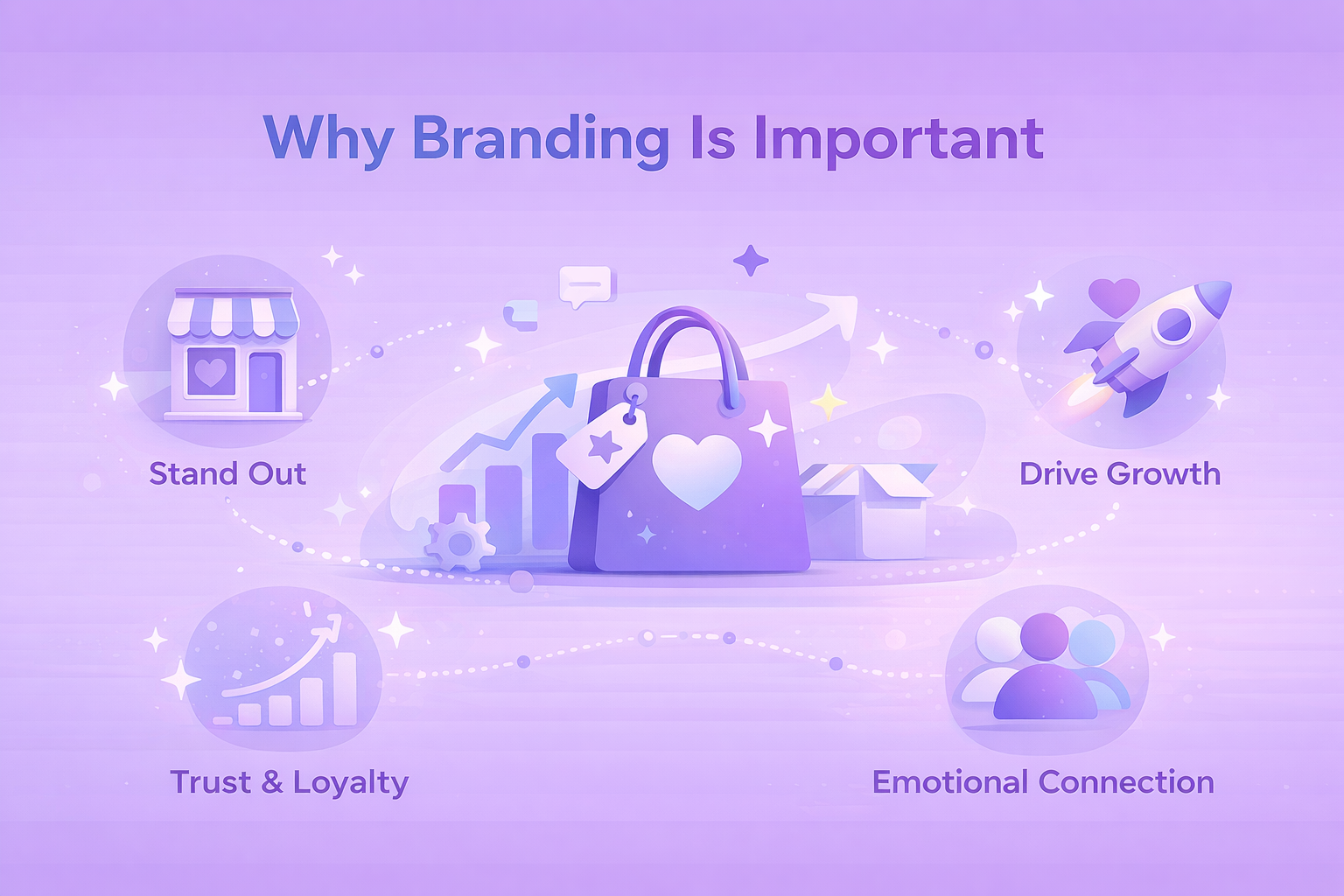 Branding is the foundation of your business’s identity. It helps differentiate you from competitors, builds trust with customers, and makes you more recognizable. A strong brand doesn’t just attract attention – it creates lasting relationships, drives customer loyalty, and ultimately boosts your sales. In today’s crowded market, a clear and consistent brand is crucial for standing out and making an impact.
