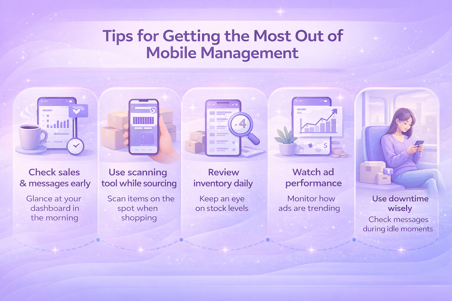 Sie können Angebote direkt von Ihrem Telefon aus erstellen oder bearbeiten. Sie können Fotos hochladen, Beschreibungen anpassen, Schlüsselwörter aktualisieren und Ihre Preise festlegen, ohne einen Computer zu benötigen. Das ist nützlich, wenn Sie unterwegs Produkte beschaffen oder während eines arbeitsreichen Tages kleine Aktualisierungen vornehmen möchten.