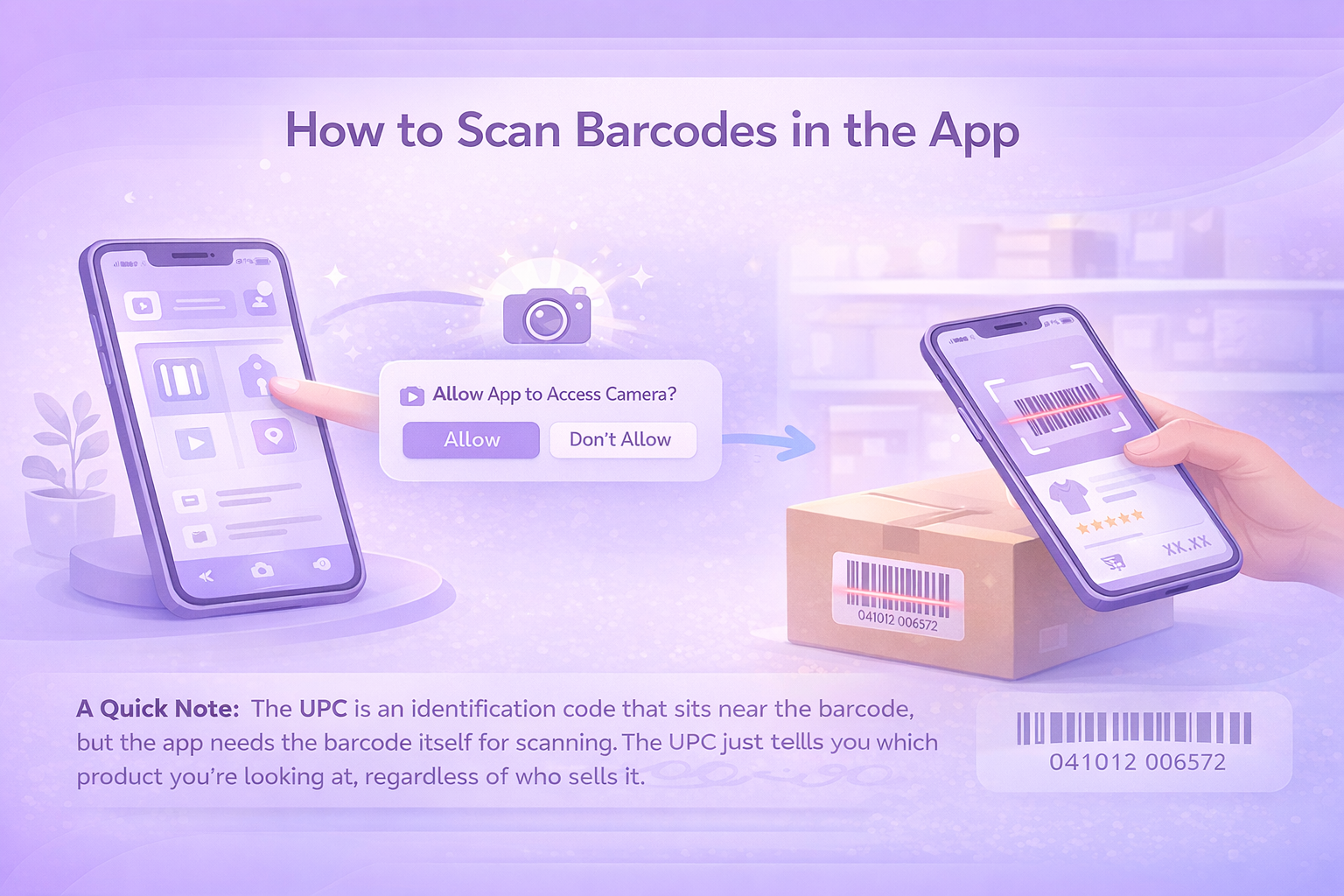 Kurzer Hinweis: Der UPC ist ein Identifizierungscode, der sich in der Nähe des Barcodes befindet, aber die App benötigt den Barcode selbst zum Scannen. Der UPC sagt Ihnen nur, um welches Produkt es sich handelt, unabhängig davon, wer es verkauft.