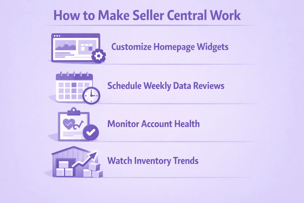 Sie versuchen, alles auf einmal zu machen - 100 Keywords zu jagen, 10 Arten von Anzeigen zu schalten, auf jeder sozialen Plattform zu posten. Suchen Sie sich 1-2 Dinge aus (in der Regel Angebotsoptimierung + automatisches PPC + Bewertungsanfragen) und werden Sie darin zuerst richtig gut. Beherrschen Sie die Grundlagen, bevor Sie weitere Ebenen hinzufügen - so werden die meisten Verkäufer von Verlusten zu Gewinnern.
