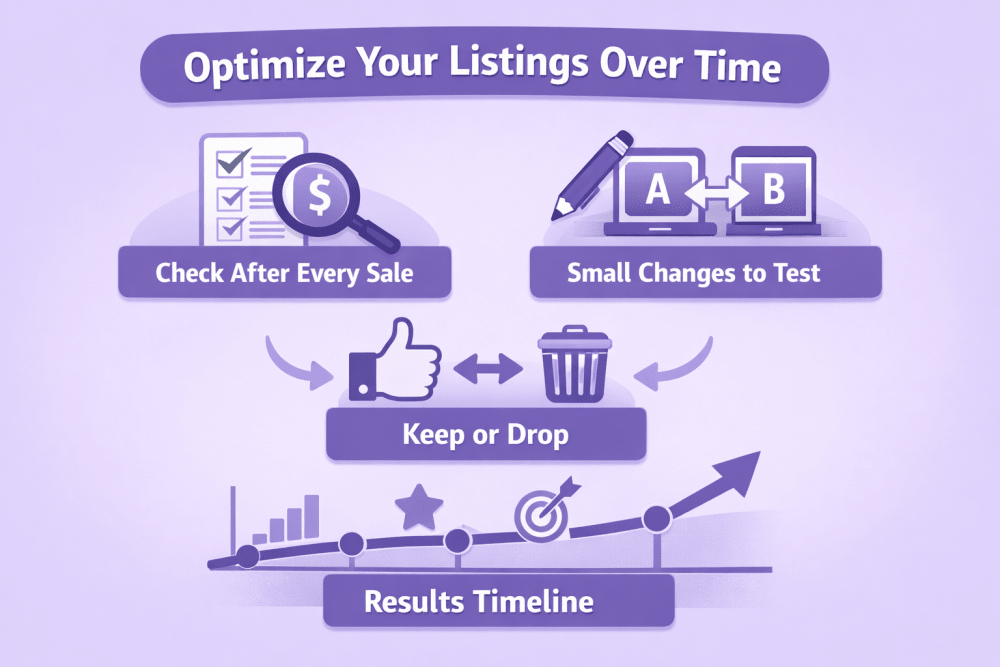 Es hängt von Ihrer Kategorie und der Konkurrenz ab, aber die meisten Verkäufer sehen innerhalb von 2-6 Wochen ein besseres organisches Ranking und höhere Konversionsraten, wenn sie Titel, Aufzählungszeichen, Bilder und A+-Inhalte richtig anpassen. Der erste große Sprung kommt in der Regel nach 50-100 neuen Verkäufen bei der verbesserten Auflistung, weil Amazons Algorithmus frische Geschwindigkeit und gute Konversionsdaten liebt.