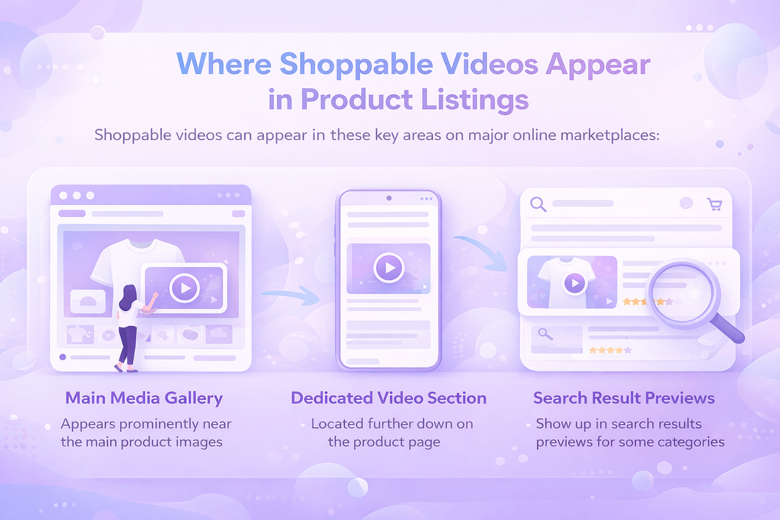 Ein Shoppable Video ist ein kurzes Produktvideo, das direkt in einem Produktangebot platziert wird, normalerweise in der Nähe der Hauptbilder. Es hilft Käufern zu verstehen, wie ein Produkt aussieht, funktioniert oder in den realen Gebrauch passt, bevor sie einen Kauf tätigen.
