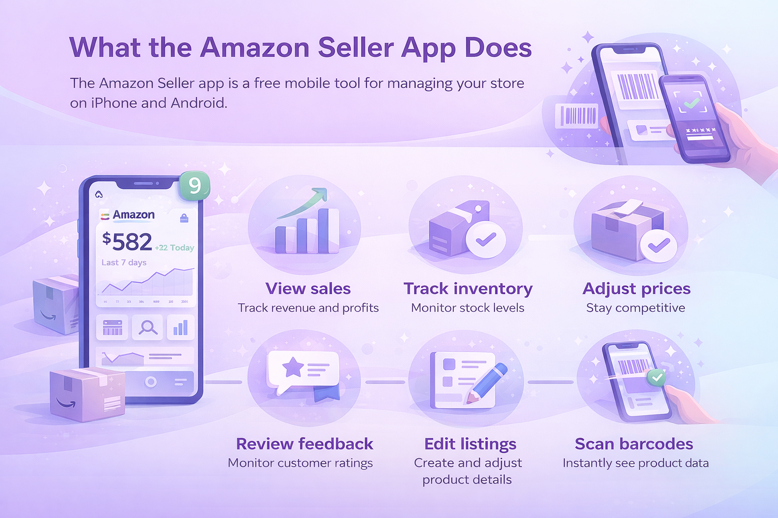 Si vous vendez déjà sur Amazon ou si vous débutez, l'application Amazon Seller peut vous faciliter la tâche au quotidien. Elle vous apporte l'essentiel sur votre téléphone, ce qui vous permet de vérifier les performances, de mettre à jour les listes, de répondre aux clients et même de repérer les nouveaux produits lorsque vous êtes en déplacement. L'une des fonctions les plus appréciées des vendeurs est le lecteur de codes-barres intégré, qui vous permet d'obtenir des informations détaillées sur les produits en quelques secondes et de déterminer rapidement si un article mérite d'être ajouté à votre catalogue.