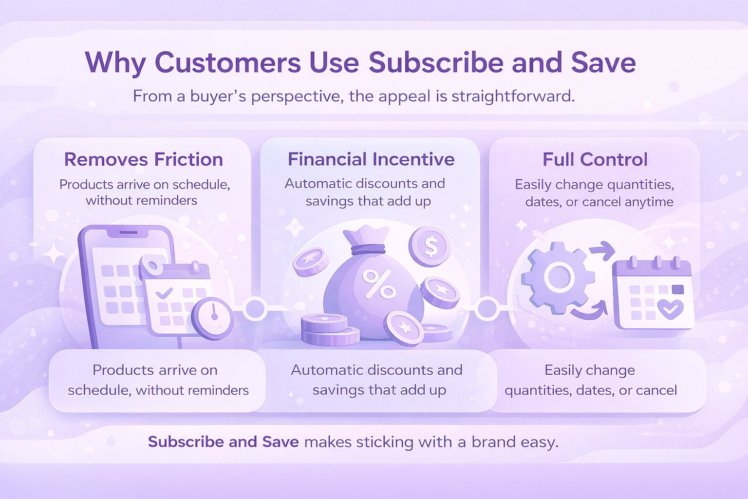 Les achats répétés sont ce qui permet à une entreprise Amazon de passer de l'imprévisible à la stabilité. Les ventes ponctuelles sont utiles, mais la croissance régulière provient généralement des clients qui reviennent sans qu'on le leur rappelle. C'est exactement ce que le service Amazon Subscribe and Save est conçu pour favoriser.