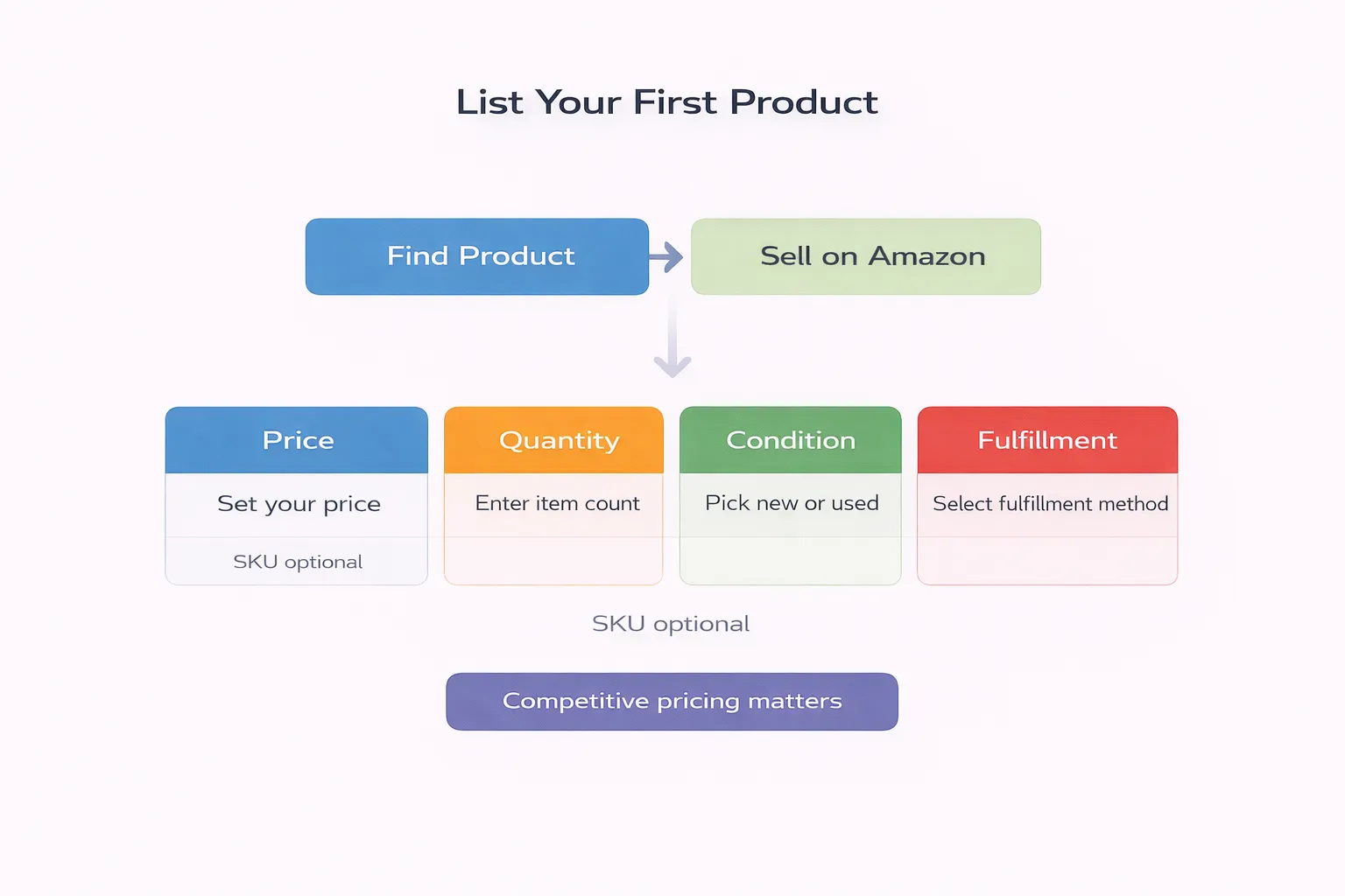 Sau khi tài khoản đã được thiết lập, bước tiếp theo là bắt đầu đăng bán sản phẩm trên Amazon. Các nhà bán hàng cá nhân trên Amazon không thể tạo danh sách cho những mặt hàng chưa có sẵn trên nền tảng này, vì vậy khi đưa sản phẩm ra thị trường, việc tìm kiếm chúng trên Amazon sẽ dễ dàng hơn.