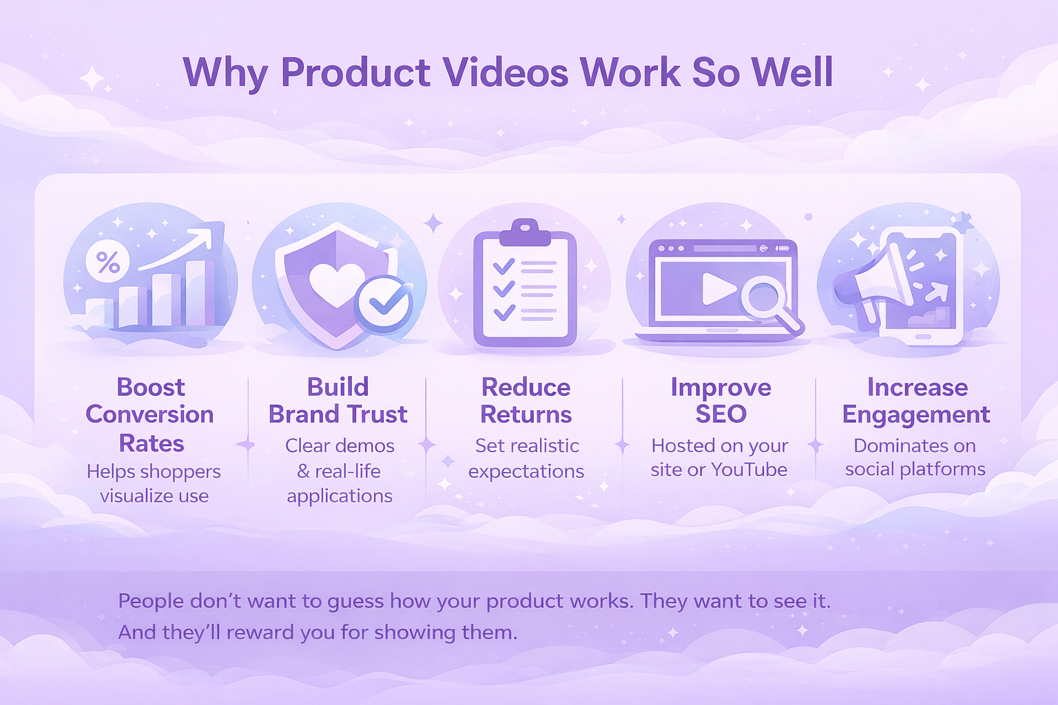 一部优秀的产品视频并不需要病毒式传播。它只需要完成自己的工作:让你的产品清晰、引人注目、易于理解。如果它展示了实际用途、解决了问题,而且观看起来感觉自然,那么你就已经领先于大多数竞争对手了。.